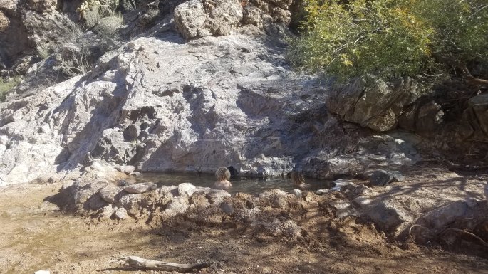They kept hiking trying to find burro creek. Atreyu decided readily to get out after a few hours but Galixy kept bobbing his head, grinning over the rock wall at me, then splashing like crazy. It took a while but I finally coaxed Galixy out.