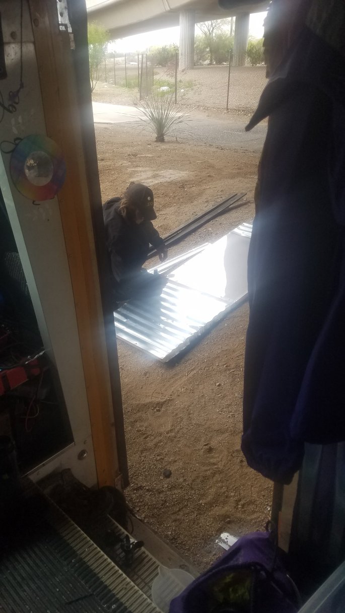 It started raining so we went to thrift stores. I got a carpet for $2 which is a steal considering same size carpets at the habitat for humanity were $20. But we found a plug in drill that works off my inverter for only $10. The only drill there, but man does it have some torque. A quick stop at Ace and off to a park with shelter and electric to screw around some more.