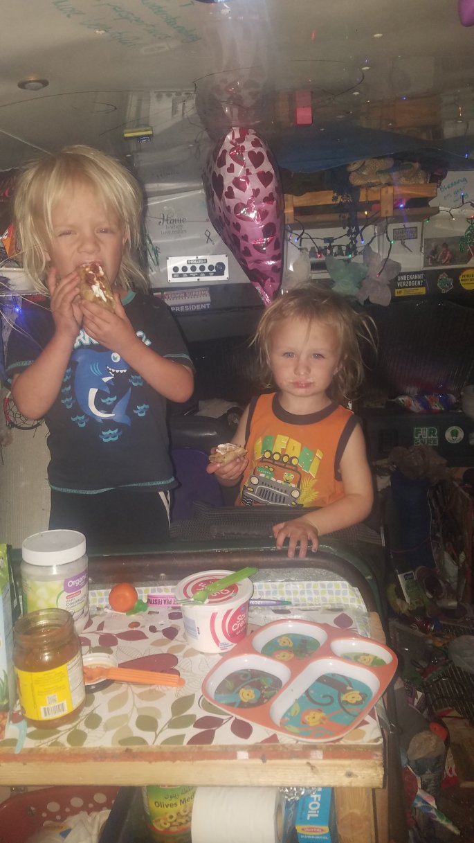 He seems like a very nice, 50+ year old guy. He believes in God and rides trains. Solo is helping with the bus so that it’s nice and safe for the kids. In his gentle way he told me he thinks I’m screwing up by not accepting more money. He also called me a good mom for exposing my kids to the world and doing what makes me happy. I offered him a ride on my bus since he’s also trying to go east.