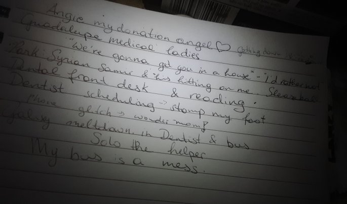 The next thing on the list was dentist for Galixy, so we went to Guadalupe and spoke to some wonderful people that help the homeless. The first thing they said was that they were going to get us housed. I told them, thank you, but we’d rather not, so they filled out some papers and sent us to a clinic to wait there from 1pm on.