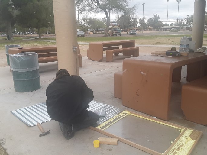 That door needs just a little more work, but then my next project will be getting the propane tank mount on back and a water tank under the sink. Then there will be a new shelving area, and I will be able to focus on getting stuff into the Bugroom. There’s so much to do and I’m over Tucson. It’s time for me to go, but we’re not quite there yet.