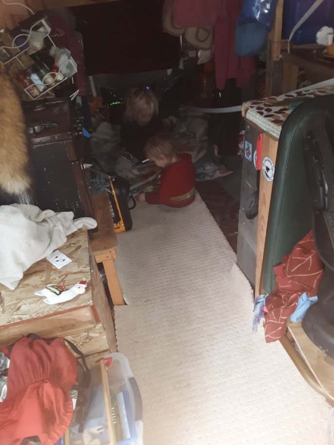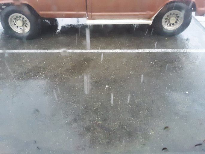 Now the sun is coming out a bit through the clouds, just in time for it to say goodnight. Solo is trying to hustle up enough money to get into a hotel room. I brought him to a spot way out of his comfort zone, but as far as I know there should be money for him here. It’s too wett to liquid nail the door trim today so the door has a solid crack on the side where it locks and I still gotta figure out a latch from outside so the door doesn’t swing open when i go inside somewhere. Considering a large rock in lieu of a lock someone may easily lock me in with.
