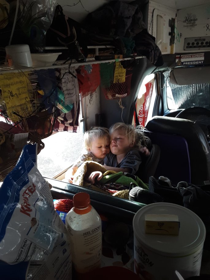 When we pulled up, we were surprised to see our friends, another traveling bus family here. The boys were shy and decided to be in our own pool to start with. I agreed since I didn’t want to put my dirty self right into their water. The water was piping hot but we soaked for a nice long time. Close to noon we had lunch and I chatted with an old hippie now vanlifer. He’s a very nice guy with lots of thoughts.