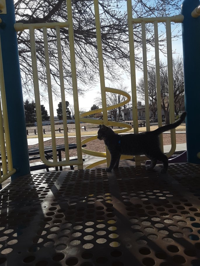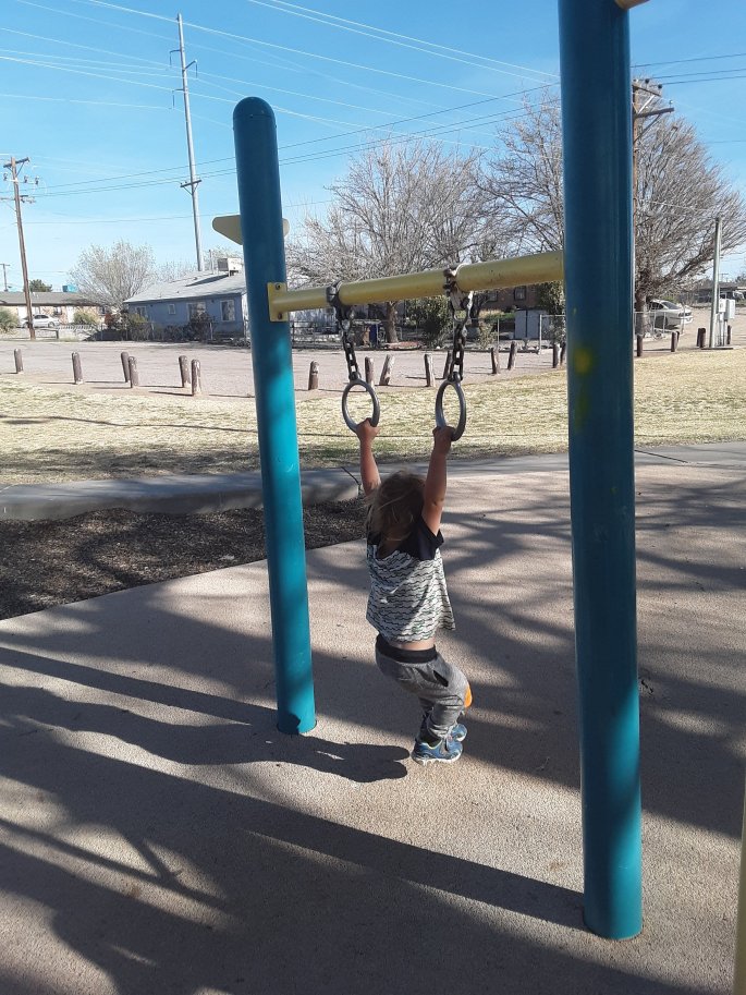 I took the kids to a park off Espina. It was a big open grassy area. The playset was a fair size but there weren’t any people. I let the kids and animals out to play and unwound for a minute.