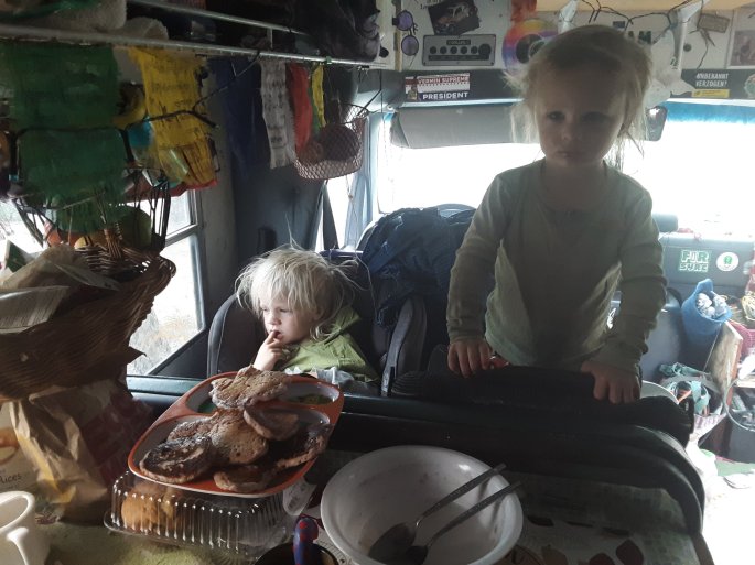 By now, it’s 9:08. The kids are beyond rowdy. They need some exercise. I will be bundeling them into some sweaters and shoes and opening that bus door.