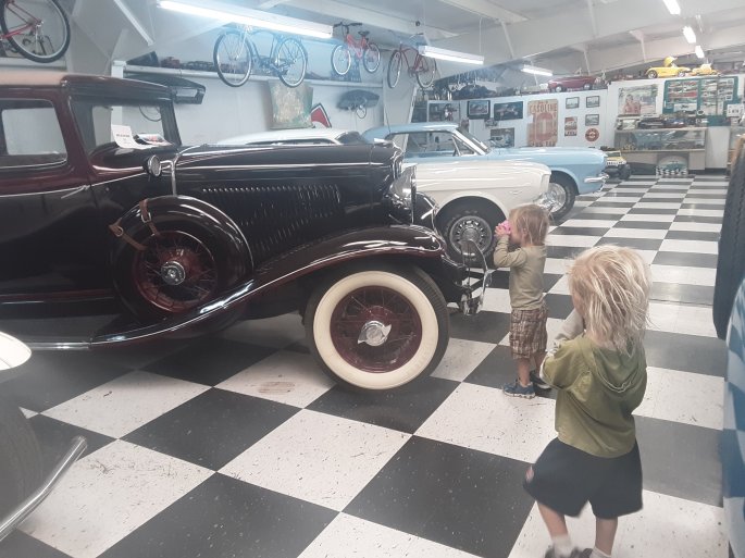 This morning, after wake up with Jelly tortillas and juice, we headed to the car museum where the boys went crazy running through the rows of cars. It’s really a nice little exhibit, especially looking at the memorabilia stacked along the walls. I was dancing and singing along to their ’50s hits. I would’ve really like to buy one of their sweet dresses, but besides being only XL and 3XL, they were $60 a pop and not the best material either.