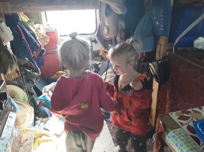 I need to get on the road before the wind increases. This weather is scary. I hope these kids go into their seats easy. I’m not willing to fight. It is super important to get out of the cold though. I’ll be starting the bus and warming up the engine and transmission before we pull it over to the gas station somewhere in town. While warming up, I usually charge my interior battery, but I don’t think I want to in this cold. You can see little flurries of snowflakes coming down on occassion. It may only be 5-20 flakes at a time, but the fact that they exist sketches me out. Galixy is in short sleeves. He can’t be moved to put on his sweater, but his hands are warm. He’s not worried about the chill. I’m wearing my sweater and coat. Oh the joy of being an adult…