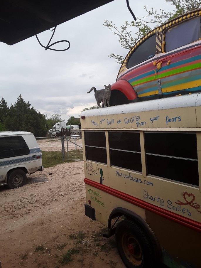 Other than that, Britany and I’ve been hanging out with the kids, especially through the thunderstorms of the last couple of days, the TV has come in super handy. I was almost on the verge of wire weaving, but I don’t sell any anyway, so why bother? Backstock? maybe if I didn’t have some of that already. So I’m investing time and energy into manifesting my bus to have work done. Mechanical and interior. We’re still so decrepit in my mind, anyway. I’m kind of thinking about the next possible expansion, which would be a trailor hitch and a trailor…… I was thinking a kids room on the back, then I could make the bunk area a bathroom. or revamp the bunks and make a study area and bathroom in a trailor. Mind you this is probably a year or two out. I still want to get the propane tank and water area done. Then tackle the bug area with a bed or insulation or something.As long as I keep up on the mechanical stuff, this bus should run forever. No need to laugh at me! I know I’m failing at keeping up on it. Last oil change done at Christmas. Transmission filter could be done. Balljoints and Tierods have been discussed again already. And the pesky Glowplugs. As soon as that’s all done, something else I never even considered was in existence is gonna start falling off. So yeah, maybe I’m laughing…. I could use a little help getting caught up on things.The kids are enjoying themselves playing around the yard. Atreyu really likes playing with Gage. Galixy is talking more every hour it seems. It makes it even harder to tell people they’re not twins.I downloaded a couple kids songs onto my list and managed not to overdraft my data! Getting as much as possible out of the data without over drafting is so satisfying. And now Galixy and I can listen to “Heidi” anytime we want. and “the wonky donkey” song too.We’ve been watching Game of Thrones in the evenings when all the adults are present. Which means we’ve been doing a show or two a night. We’re only on season 4, Which is fine cause I was a couple episodes before the season finale of season 3, so whatever. I mean,, It’s the time to start catching up cause the last one is being released.Cleaning the bus is a lot more managable since I discarded all this unnecessary stuff. I’ve been getting to bring my dishes into the house. I’m consistently making food in the bus throughout the day, then shared on dinner at night.Today’s been sunny. The boys have been outside swinging and playing with the chickens. O plays with them on occasion.