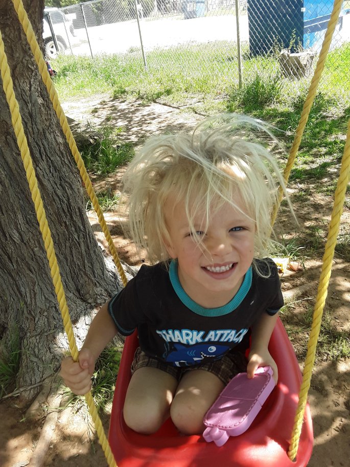 Atreyu is currently sitting in the tree talking with a bunch of older school kids. One girl kept calling him a girl. G said that he doesn’t even look like a girl, so Atreyu said, “Yeah! look at my eyebrows!” Then there was a bit of crap talk between the kids. Atreyu’s response was, “There’s some poopy coming….. well… something sticky is coming at you!!!” He’s such a silly boy.