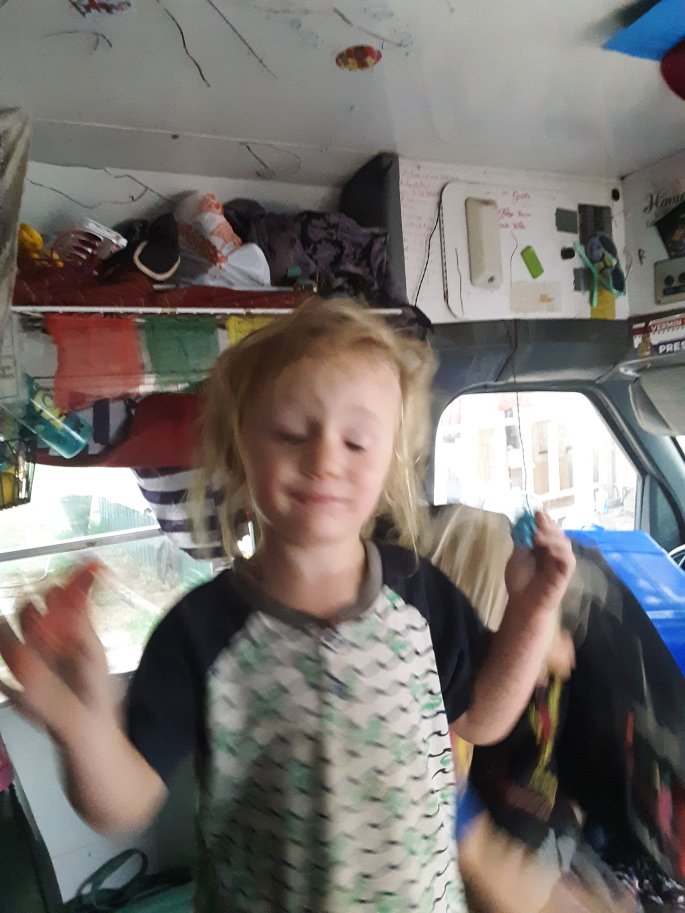 Since the older kids left, it has rain stormed. Galixy and I sat on the porch and watched the rain a little bit. I feel a lot easier about being here since we’re not technically stuck and on the verge of leaving. I figure we’ll be out of here within the next day. I just want to have my ducks in a row and leave on a good spange day. I figure if we leave tomorrow afternoon we’ll go fill up at the loves or go to the science museum. Or we could do so on Sunday.