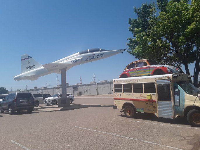 We managed to leave this morning. Leaving is very hard, no matter how often I do it. I so appreciate all the love and space we were given. I’m going to miss them very much, especially sass pants O.By morning I mean we left around noon. Galixy woke up early, therefore so did I. I used the early morning to ensure all our things in the bus were in order and ready. The kids infiltrated the house around 9:30A. B made some dank breakfast burritos. I’m going to miss her. Reminds me I should send her all the pictures I took of our kids playing these days.Before we left, we took the slow road to make sure all the tires were proper and not falling off. As, there was no crashing or wobbling, we made our way to the Science museum in Lubbock.Galixy fell asleep before we made it, but we woke him up after a little while. Atreyu was very eager to go explore. The museum has 3 stories of mostly interactive displays, as that’s really the only way to learn about science. The employees could give a little guidance on your first visit since there’s three separate options of what to pay for, which means three separate ways of where to go after paying. The mid level, which is the entry level, is chalk full of experiments and rollies. The lower level has a few longer exhibits inclusive of a large set of teeth, a hot air balloon, water life, etc. The top level had an exciting automated marble track, sports section, block building area, miniature trains, and planes. The boys had so much fun running around.