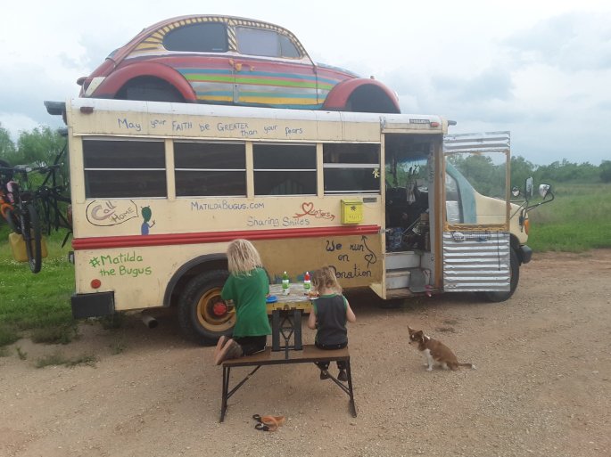 The road out was super muddy. It felt like ice the way we caught a slide. I thought it was starting to look like it was getting better, and we couldn’t be far from the paved road, right? came down a hill, slowed for the corner and there was a beautiful puddle of mud. I was all, “Well we’re not gonna make it in reverse up this hill, so let’s go!” We didn’t even make it into the deep part before we got stuck. probably a good thing. My first thought was grasses and shovel, to get some traction. When that failed I called triple A. The lady said she’d try, but the second dispatcher said it was a no-go. I turned to social media. Trusty Turtle told me carpets. I had discarded most. I did leave a few smaller scraps in the bus. Halleluja. It still took consistent rearranging, some shoveling and multiple attempts, but we got out, and right through the big mud puddle. It must’ve dried out some while we were sitting there.