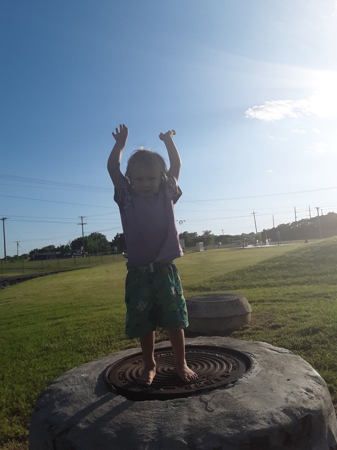 Then we headed out of Wichita Falls. I started navigating towards a wildlife reserve with camping since all free campsites were out of the way. Piloting towards it we came right passed a splash park. Atreyu saw and exclaimed his desire to go. I couldn’t disagree. The boys played for hours. There was camping on site. A sign said it required a permit through city hall. Obviously, it being Sunday, they were closed. Locals told me it would be cheap camping. The police officer told me it was a little more expensive than what citizens had told me, but nothing compared to the $20 we ended up paying this morning.
