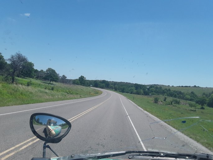 Driving the landscape has changed much for the better. We went from driving through the dust, cactus, sparse trees and same mountain in the distance to graslands of Texas to lush gras and mountains of Oklahoma. Towards the eastern border of Texas the side of the highway was speckled in light pinks and yellow. It was amazing getting into spring. Then we didn’t even see a sign that we had crossed into OK, but I could tell. The desert now far behind, lush trees and bridges going over bubbling brooks. The road side is spotted with the red of indian paint brush. It mingles harmoniously with a beautiful purple. The road is far from flat, yet mountains are no where really in sight.