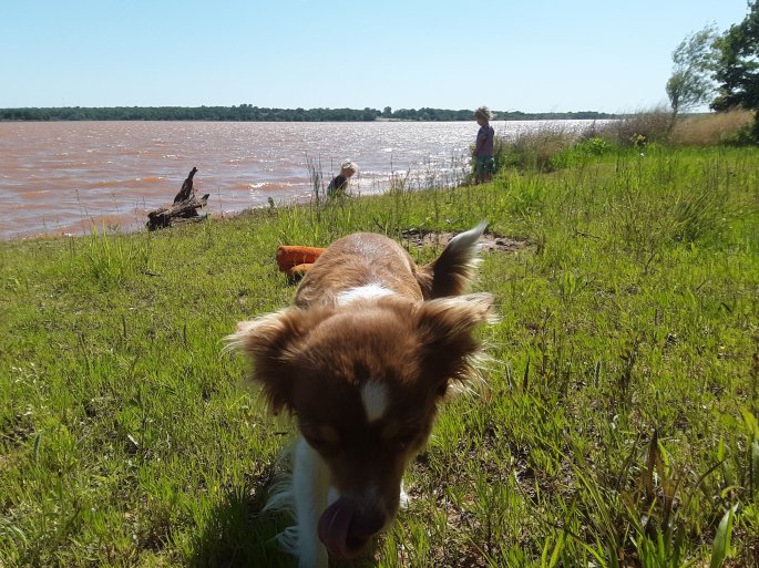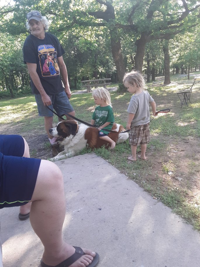 It’s a beautiful spot with $10 a night campsites, so Atreyu and I decided we should camp for a night. Soon after we arrived, a camp neighor named Larry came to hang out. He bought a lighter leash and we talked while he played with Atreyu and Galixy once he awoke from his nap.