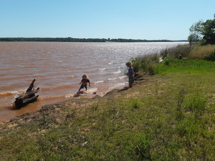 I took the boys to the water. Atreyu went right in going as far out as he could without losing touch with the ground. Galixy played in the ankle deep water with mud. We ended up having a mud fight which turned unpleasant for the boys because I insisted on washing them off proper like once Atreyu had had enough. To be fair, my mud ball got him a little in the face so I don’t blame him for having enough. Soon after, the boys wanted to go back to the bus.