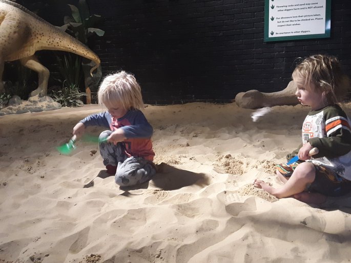 So, from Hot Spring we followed the twisty roads down to Murfreesboro. The Dino Dig was a little store front attached to a pawn shop and as the back room was a big sand pit. It was almost rough getting the boys to understand the purpose of the sifters with the shovels, but we ended up playing for a couple hours, finding little gems to put into our little plastic bags.
