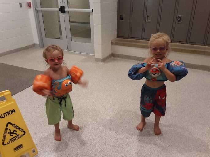After that, I took the boys to a swim center. The life guard was all kinds of strict. The water was at first very comfortable, but got very cold quick. I let the kids splash around for a good long time, then I took them into the nice hot showers and scrubbed them good.