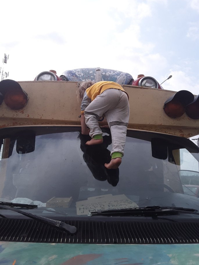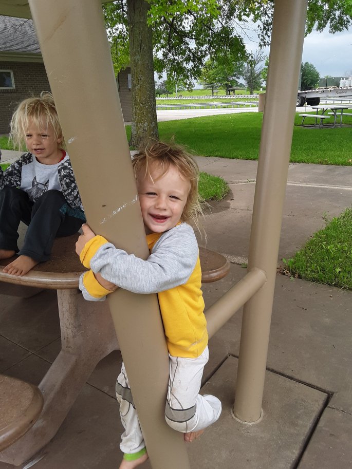 Yesterday I drove a total of 7 hours. Stopping to put some fuel in and letting the engine rest. Everything was flooded in Iowa. It lloked like miles and miles of lake with homes in the middle. For driving into the middle of the storm area, we only saw a little sprinkle of rain. We also stopped in Sioux Falls to play at a playplace for a little while. That’s probably the reason my belly is feeling queasy this morning.