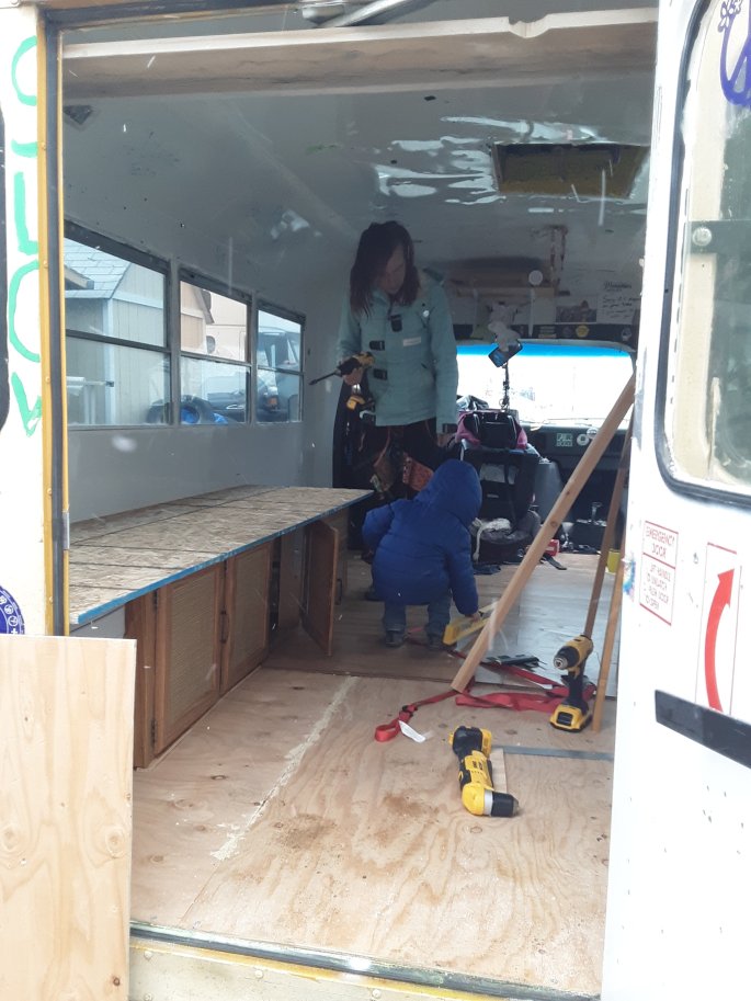 We’ve been doing a lot of work on the bus! Having a team really makes it fly and be manageable. Bigger project than I think they anticipated, or at least longer, but I feel like it’s all knocked into place. The kids are getting separate bunks on a side, so I’ll have plenty of room and still plenty of projects. But we can do it!