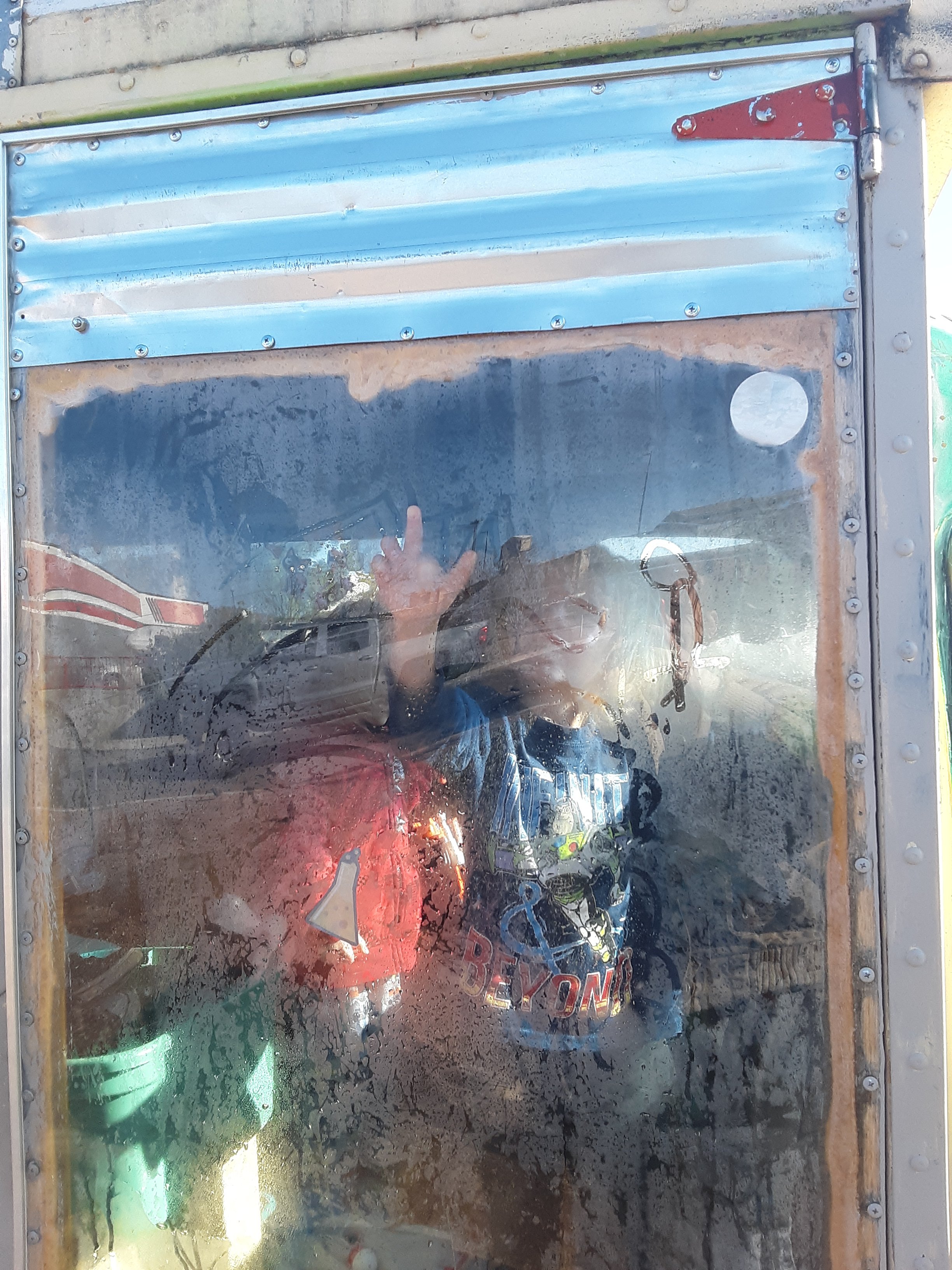 In the morning we hung out till a little afternoon. We got a few bucks kicked down but nothing substantial. The gas tank ate it all. We parked at the locomotive park for a little while and walked to the playground. Had a few nice interactions, but soon the kids wanted to hit the road. Not long after we were on the interstate, they wanted to pull over again. Very decisive kids I’ve got. Good thing there was a rest area about half way. We hung out there for a bit and I took the chance to empty the toilet (which I should really do more frequently). Then we headed for Havasu. I would’ve stopped at the truck stop at the interstate exit but Atreyu voted for the grocery store, which was just as well, since it was getting dark once we made it out of there and we had to head for BLM land. No overnight parking anywhere in Havasu.