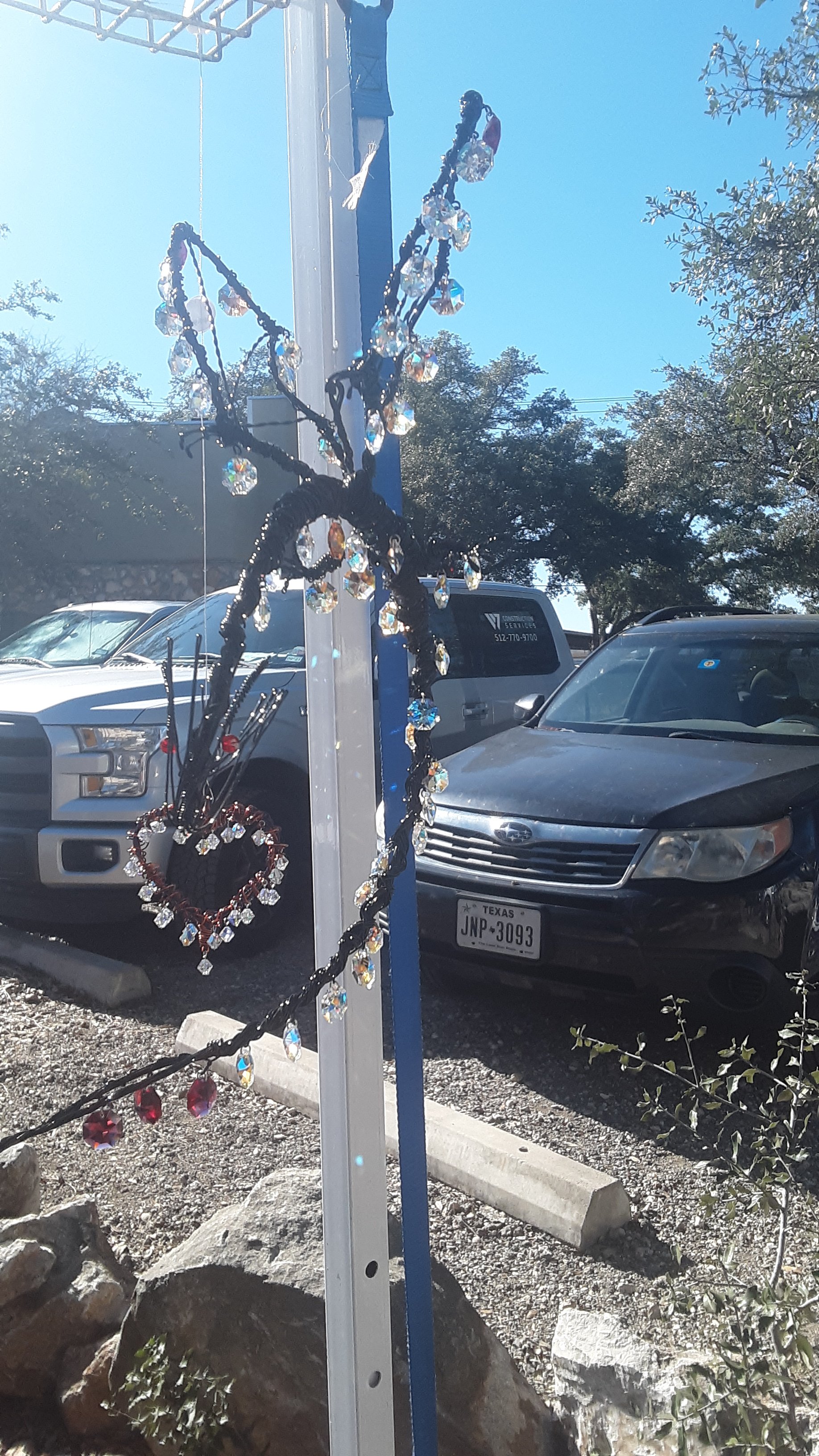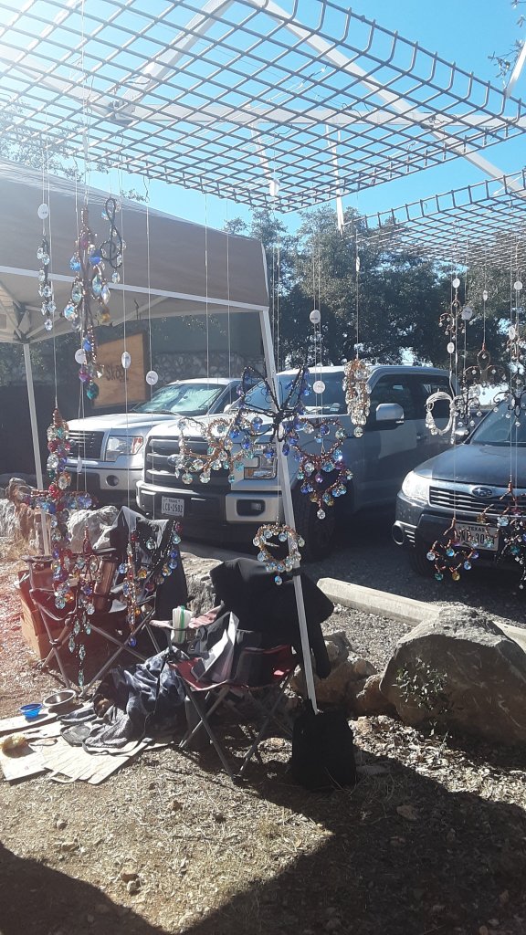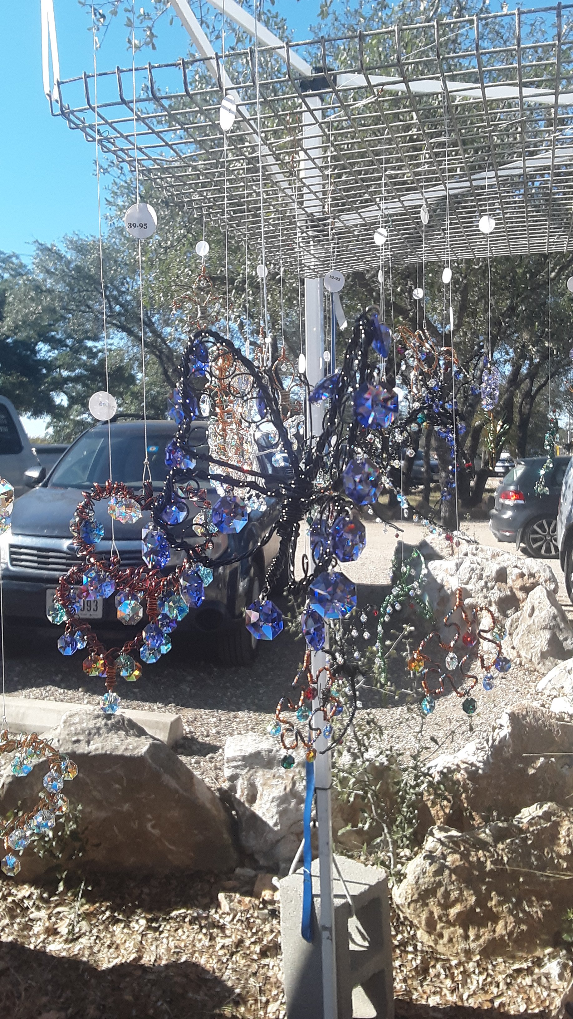 On Saturday we went on a short trip into town, but really hung out mainly. On Sunday we to the farmers market Molly works at and checked out the stands and gave our friend some company and an extra hand breaking down. I bought a super cool hummingbird with swarowski crystals. I didn’t realize how poor my picture of it in my window turned out until I sent a picture to Saliha and she couldn’t distinguish what it was. The guy selling them was super nice. I took pictures of more of his pretty things because I really like his idea. He gave the kids two crystals and uses 12 gauge wire. The results are amazing. Bluebell flowers, weeping willows, dragons, butter- and dragonflies,… What creations. The man is Dan Schafer and you can contact him at schaferdb@msn.com if you’re interested in any of these: