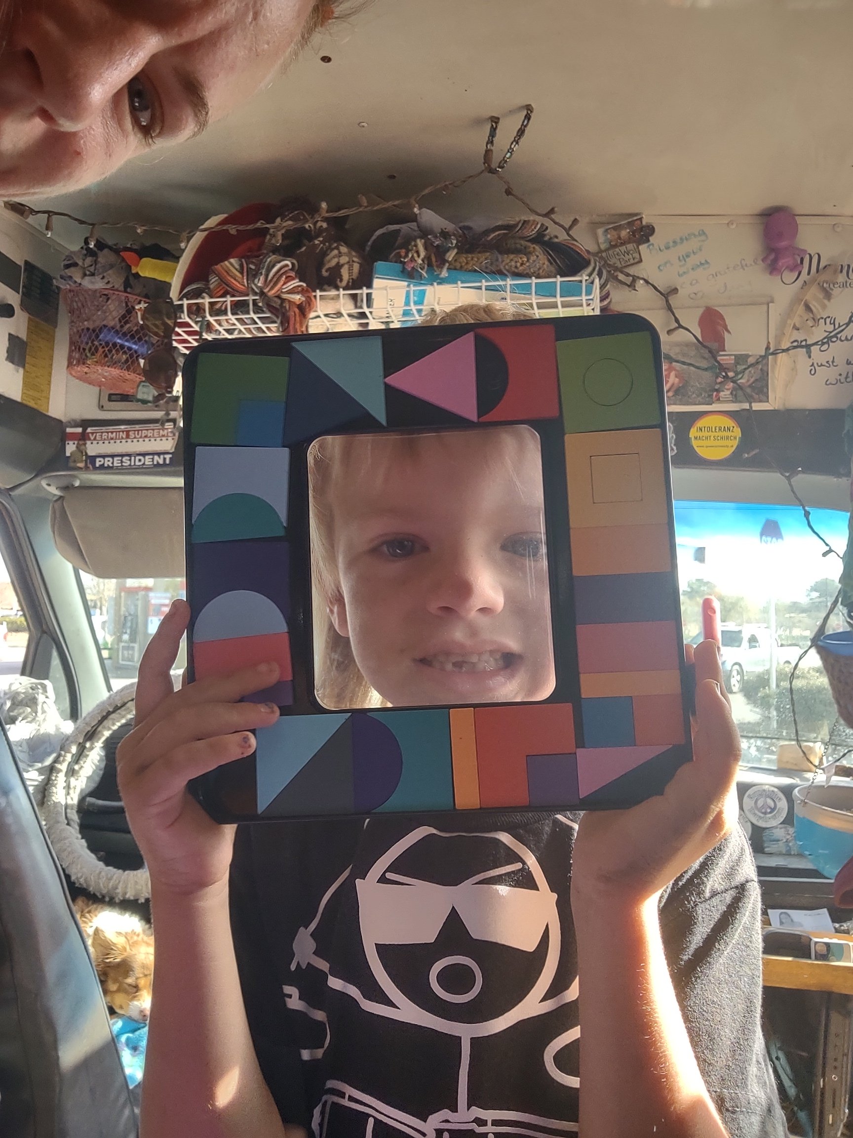 Oryan took the kids and I out to Waffle House for dinner, then we drove up the coast a bit to the Walmart with beach front property in Christian Pass. We took the chance for a beach stroll the next morning before heading up to the De Soto National Forest, POW airraid camp for a couple of nights down time. Oryan set up his tent and we put a tarp over Bugus’ entry way for comfortable sitting. The first night we had some intense thunderstorms but on the second night we had a nice fire. It was a beautiful place for walking and exploring. Galixy found her butterfly wings and flew around the woods all day. Atreyu took a good half hour to sit and animal watch. He said he only saw a lizard, but I thinl that’s because he was daydreaming.