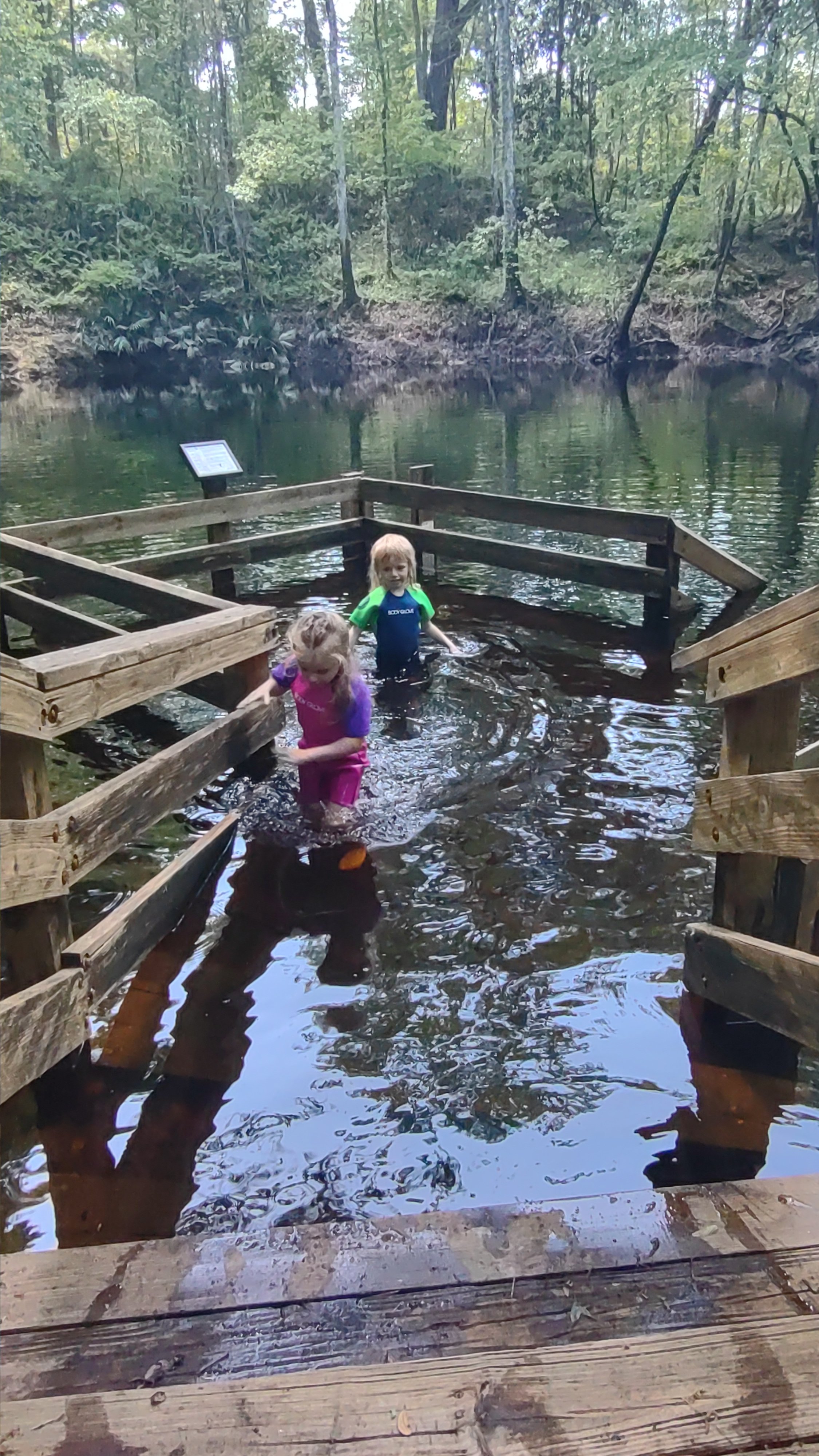 I Just remembered our other adventure we had recently. We stopped at these springs that’s the shortest river in the world cause most of it is in a cave. The kids swam in the chilly water after we took a crap of a bushwhack getting lost and disoriented. I even had to use my maps to try and get us back to a road from which we just walked along and around the corner back to the bus. Bum deal since if we had succeeded we’d probably seen the cave hole entry. Divers are advized not to go close unless experienced.