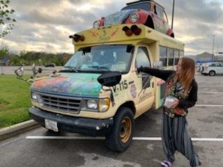 Right after arriving, I was just opening the bus door for the dogs to have a potty break, I was caught off guard and my heart jumped a little by the presence of a blonde bushy haired guy. He said he’d just gotten off work at the Walmart and was about to head to a van for sale to see if it would be his future home. He’d been considering van life for a bit and felt seeing Bugus was a good omen for his upcoming adventure! His name is Bryce and he took some amazing pictures of Bugus! He helped us out so much and has one of my pendants now too! It’s been one of my favorite pendants over the last few years. I held on to the stone for a few years before I felt capable of wrapping it satisfactorily and added a small emerald on it to make my two favorite colors in it, lilac purple and green. I couldn’t be more pleased that it was the pendant that spoke to him most! I told him we should stay in touch and that I hope we’d have a chance to caravan in the future, too!
