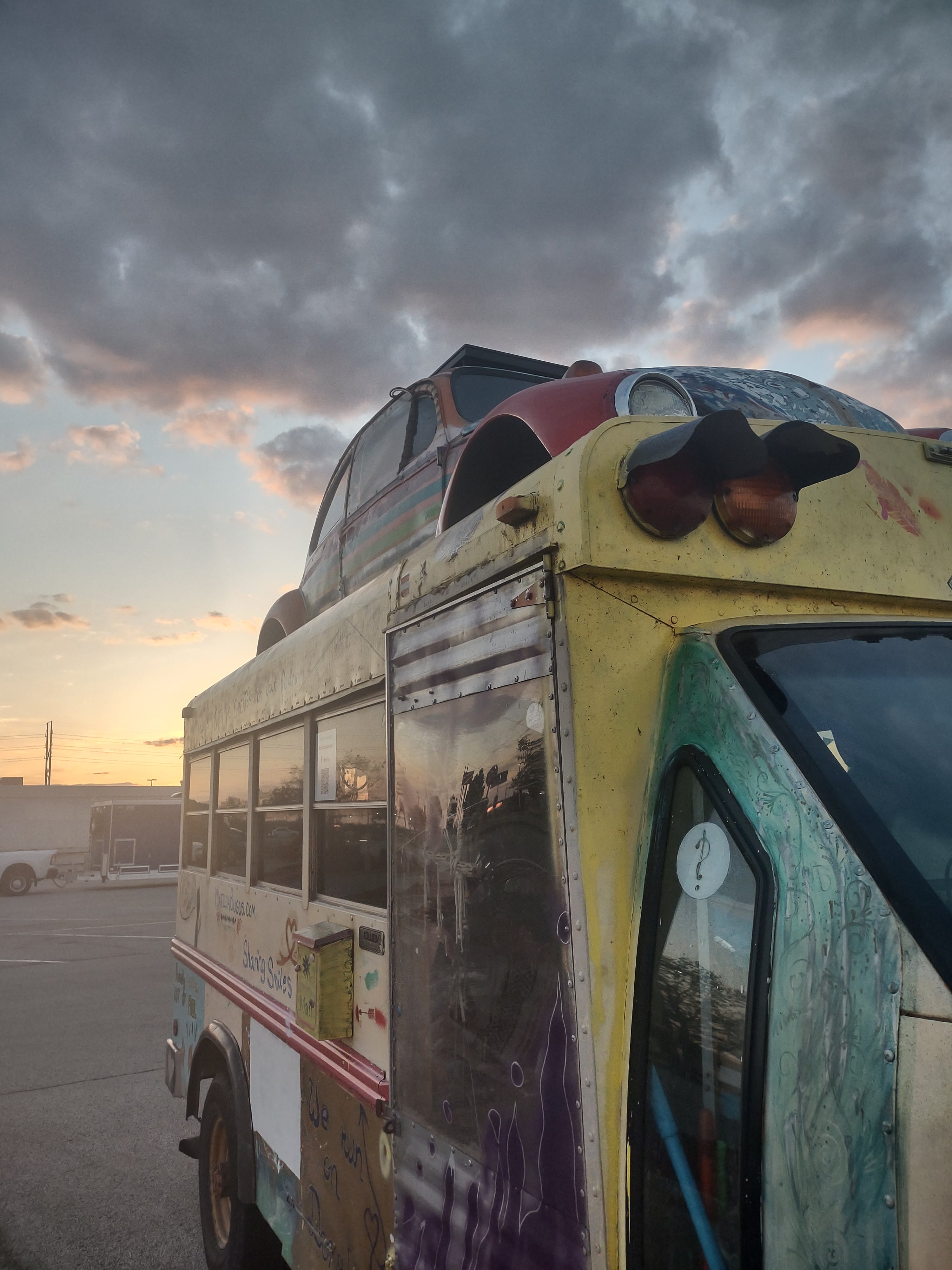 I spoke to a couple people while there. I’m going to call this guy Paul because that’s what I think to remember him saying his names was, asked me a few questions and then was blown away when I said that my kids were in the bus. He hadn’t heard a peep from them. He pointed to his blue car and said he lived in that, too, then asked if we’d eat some chicken for dinner if he bought it for us. He said he had to go into the store anyway…. This guy came out with a cart full of stuff, grabbed a bag of bagels out of it, said the rest was for us, handed me a wad of cash and the receipt in case we needed to return something and left. I was like “Whoa, whoa!” and all he said was that that’s what you do is take care of each other. Paul is amazing.