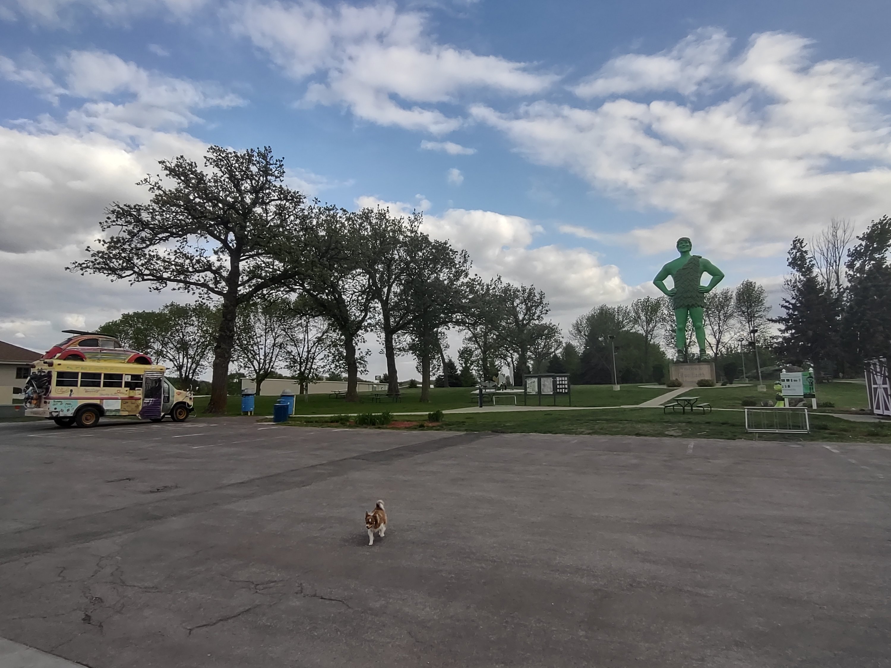 Stocked up with raspberries, Watermelon, and pudding cups, we headed on to Blue Earth where the olly Green Giant statue stands. Galixy napped through that visit, but woke up for us to eat the tasty Butternut squash ravioli for dinner. I’m super sick of cheese ravioli so I’d bought only a small pack of the Squash ones which was a bad calculation because we all enjoyed them so much we could’ve all ate seconds.