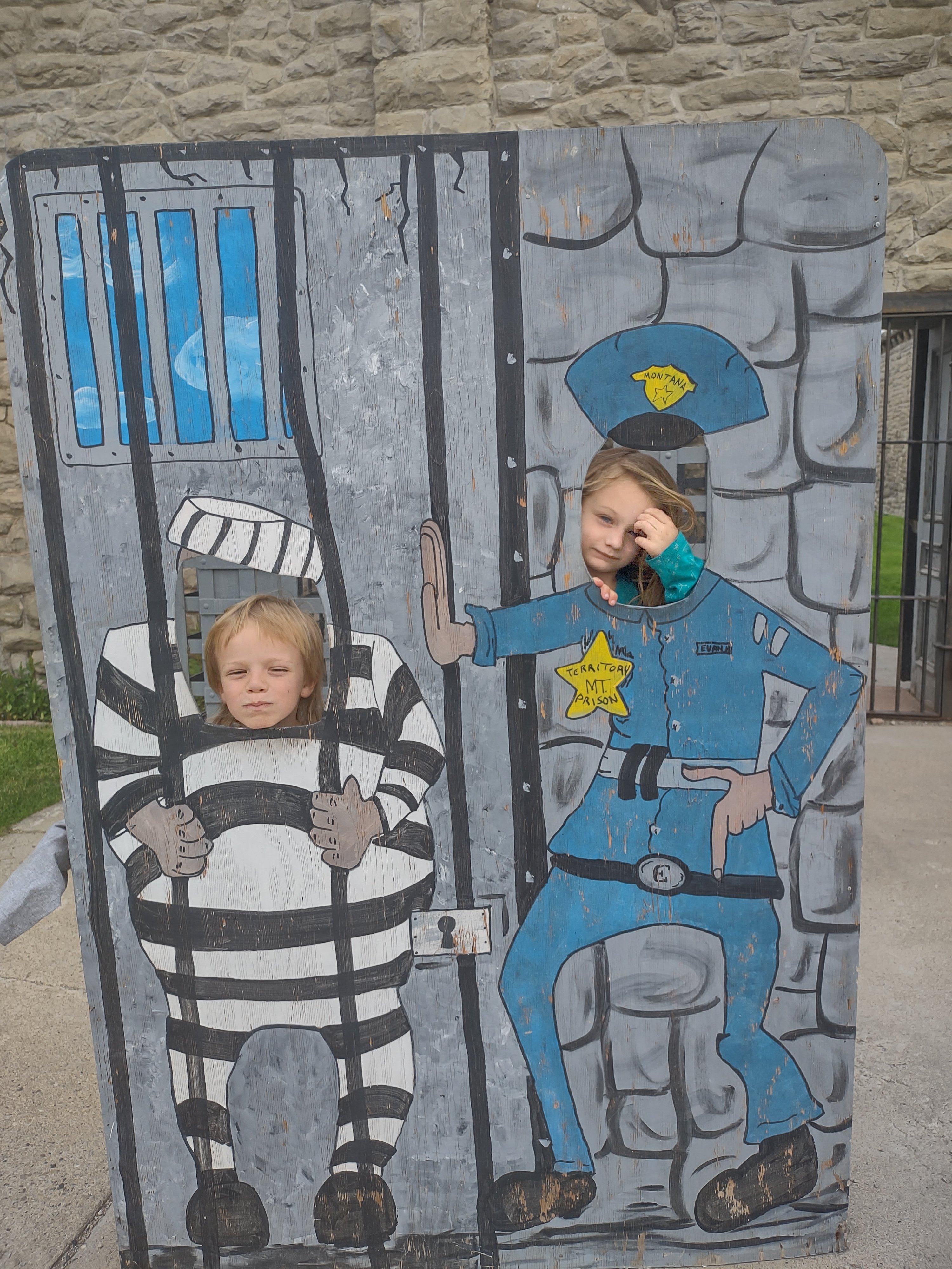 We did the Deer Lodge museum tour yesterday, walking through the Old Prison and Auto Museum, then Yesterday’s playthings, and Cottonwood city. We did a lunch break before going into the frontier museum which also had a World War II exibit. From there we went to the art Gallery and harrassed Mrs. Paull past closing time. The kids received pretty painted rocks as gifts and I purchased a Cardinal with nest decoration. It was a beautiful day. Galixy had some trouble listening and behaving, but I guess that’s typical behavior for an almost 5 year old in a large museum. Atreyu behaved exemplary.