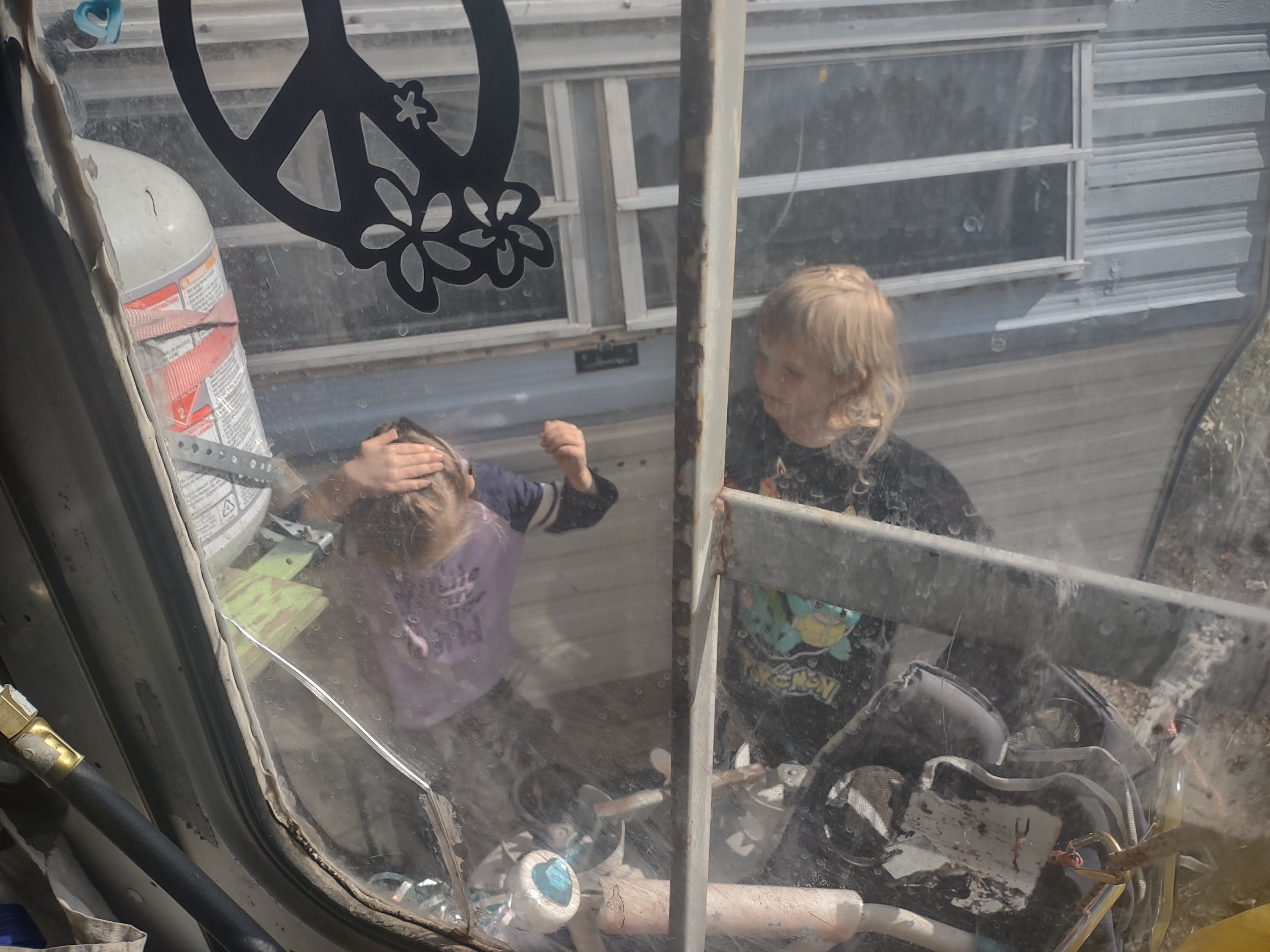 This morning Atreyu wanted to listen to more audiobook and we lazied about a little. I did the pile of dishes left from the last few days and the kids played outside and on the rivers edge.