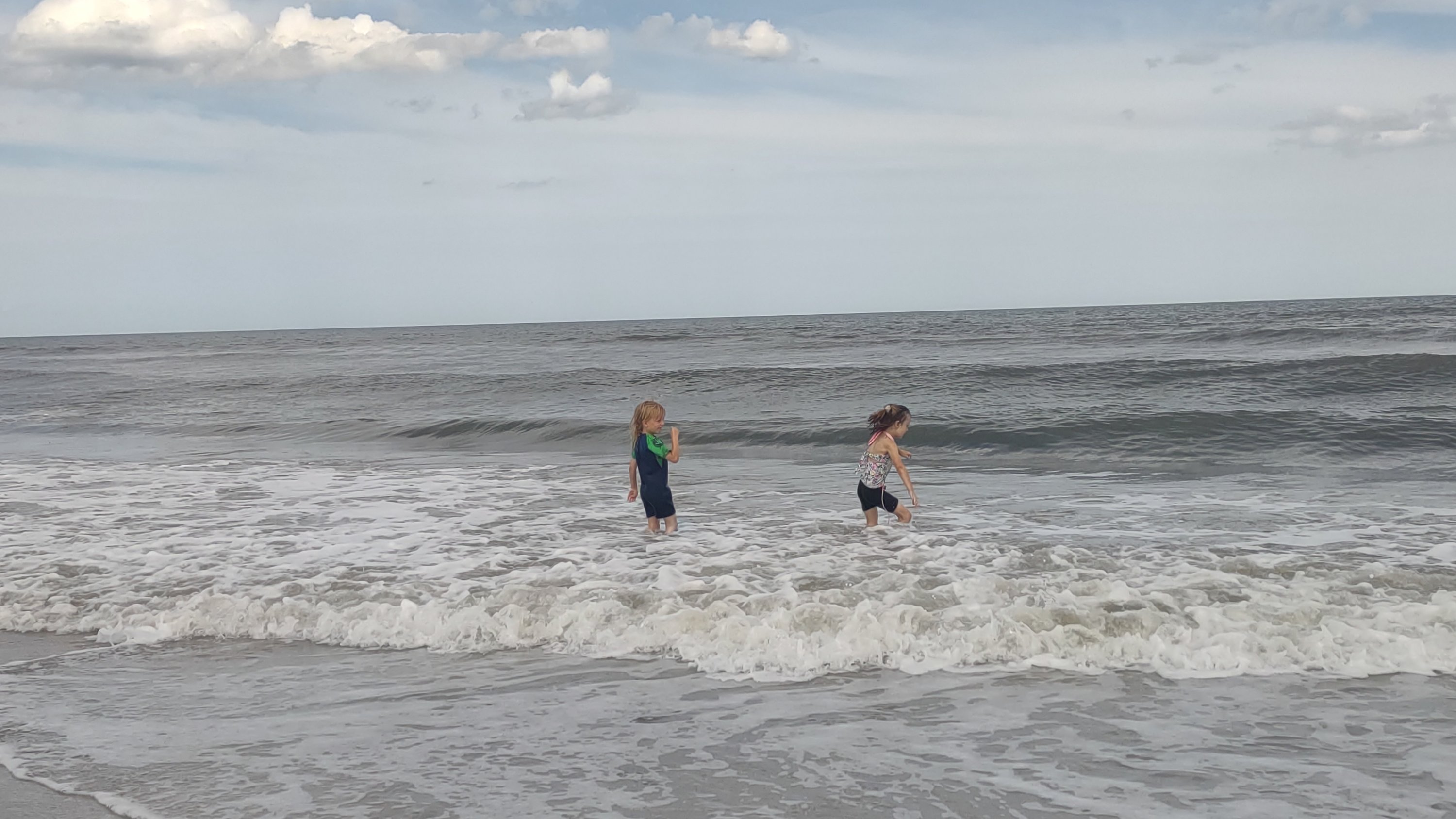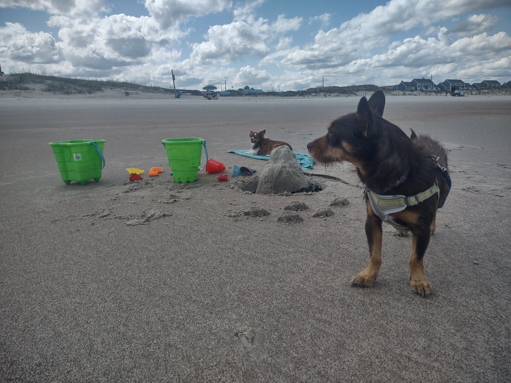 The other day we went to the beach in Ferdinand, FL. I love the beach. I’d not let myself enjoy it much the last few times we’d gone, so this time I vowed to do little responsibility and lots of whatever just came to mind. I built Gizmo a leash holder, and then built myself a sandcastle with moat while keeping a loose eye on the kids jumping in the waves. They got caught by a couple sweeping them off their feet, but they enjoyed it. I also went to jump in the waves. I went out deep a bit too and then took Atreyu on my back to experience the “big waves” just a bit further out where the wave pulls you up in a small hop if you dont fight it. Galixy wasn’t interested in trying. It was an amazing time of fun. It was cold drying off, though the sun helped, but getting the kids to rinse off at the cold beach showers by the parking lot was a task and chore, but we did it.
