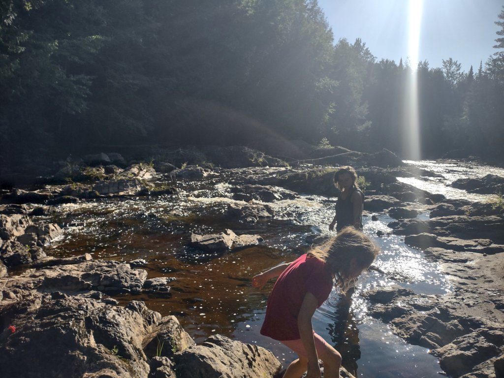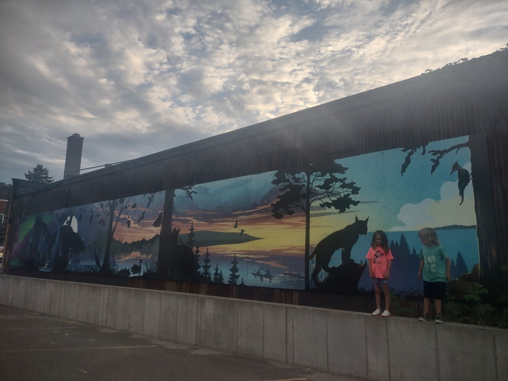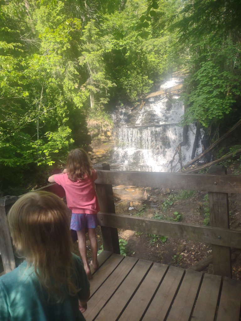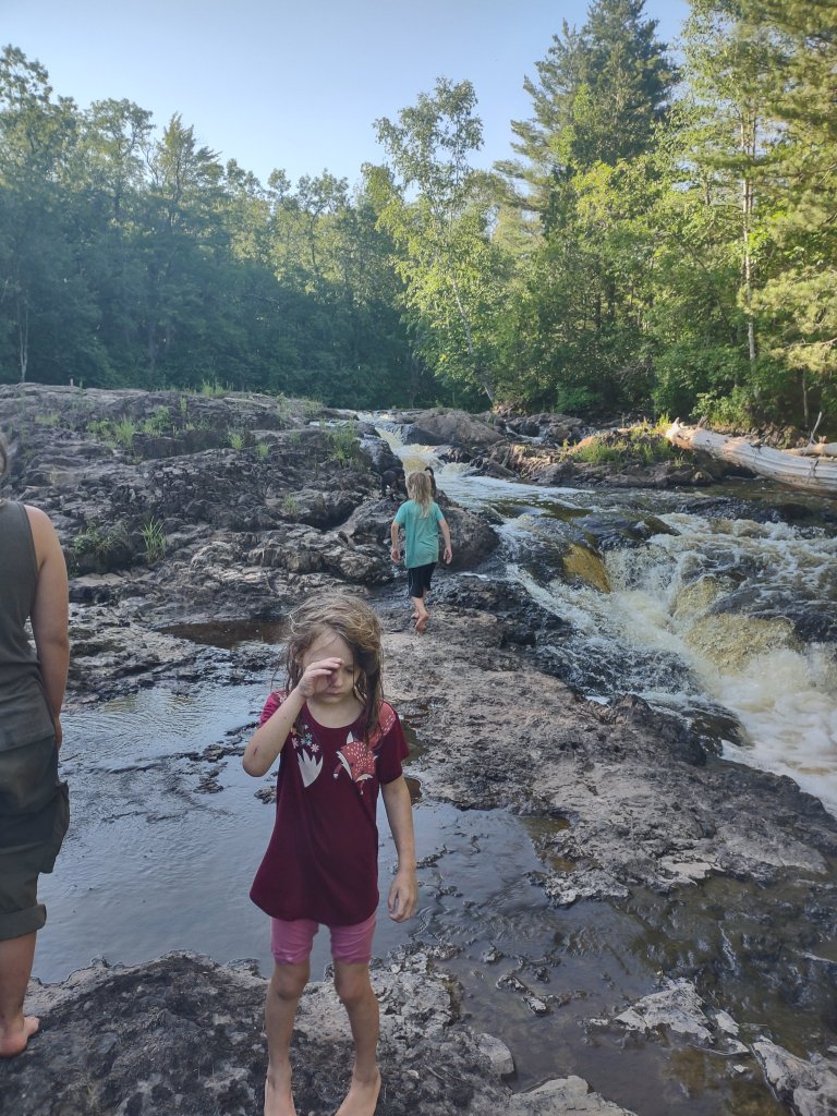 The kids did have a lovely time playing in the lake a bit before we left that campsite. We headed towards the outskirts of Munising where we hung out at the truck stop a bit to get some fuel. In the evening we scoped out Munising whilst enjoying dinner at Eh! Burger. I thought maybe we’d find an on the street over night parking spot, but Munising city policy says they’re very strict about it, so we drove back out to the national forest behind the truck stop where we were at and parked near a radio tower.