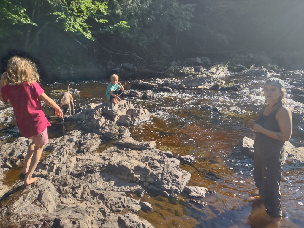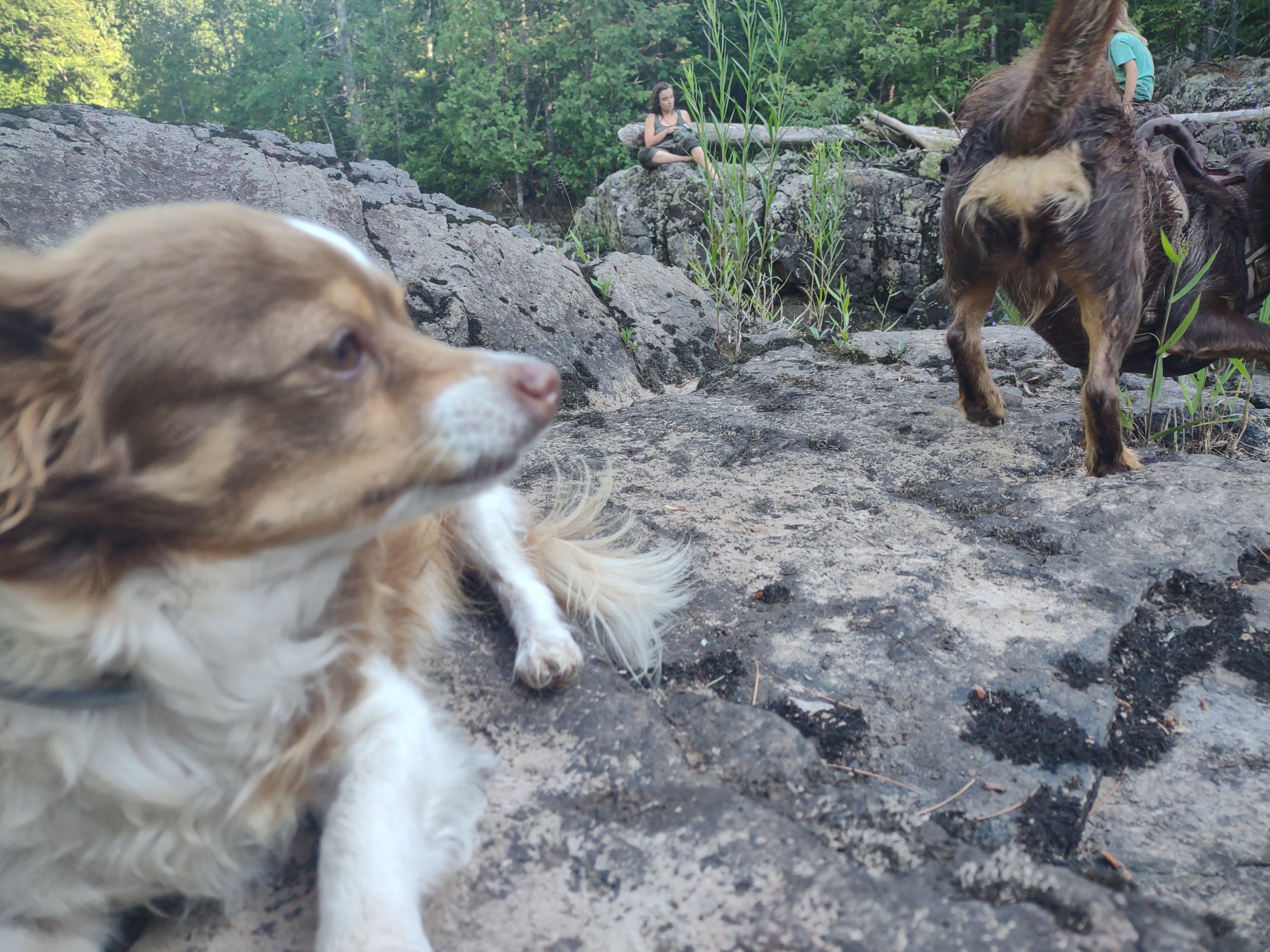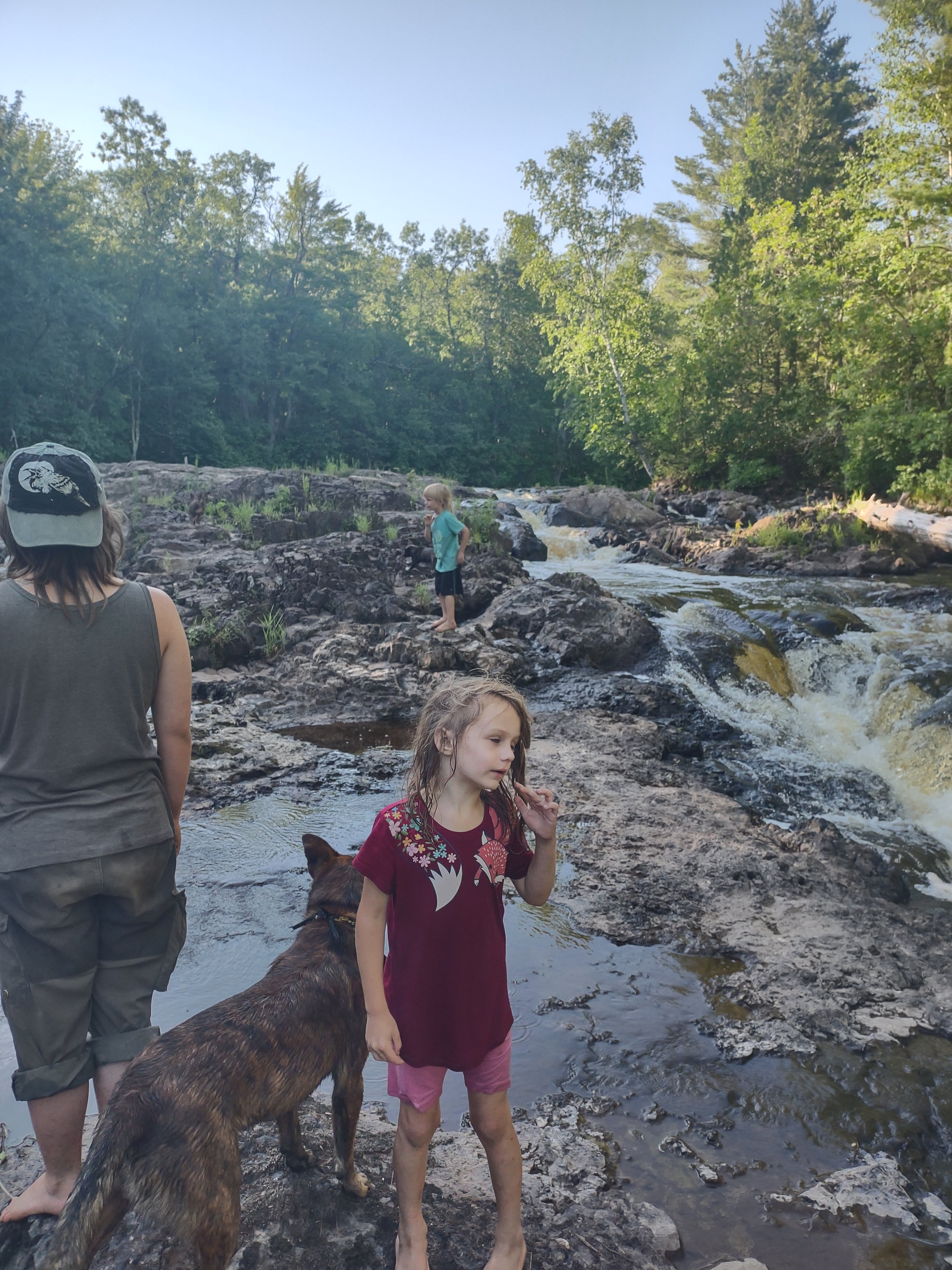 The plan was to just stay one night, use the morning to explore the trails a little and then head down the road. Well, at the spot at the lower waterfalls where the kids were swimming is where they found us. Sully, the fullygrown doggo Sparrow, and the two month old puppy Ursa. We started chatting and didn’t stop for few days.