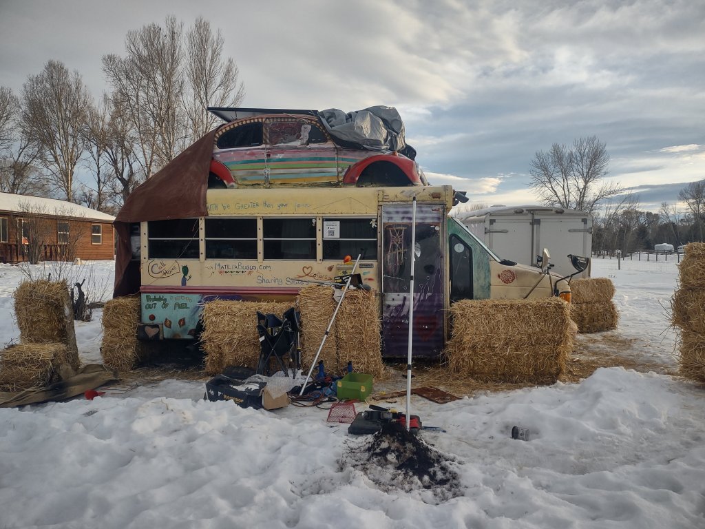 I’ve successfully reparked Matilda and fixed the leak from the lift pump. Some strawbales are fairly frozen to the ground still, but I haven’t given up in the attempt to relocate those as well.