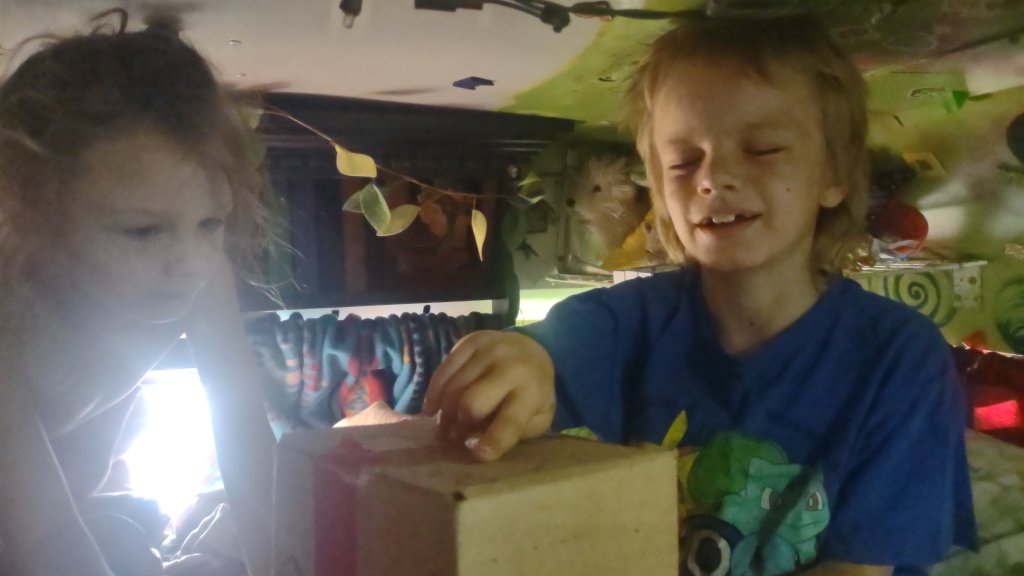 I guess I must continue on doing the school work with the kiddos. Atreyu got Snap Circuits from Papou and Mimi which he’s been using as school work! He wished for science projects for his birthday (cool wish) so Kayla, Rosa, and Jezebel got him a Volcano, puzzles, and wildflower seeds! Turtle got him a fancy sketch pad and new markers. He certainly got a few more gifts not directly school related. Glad I took videos to commemorate and remind me.