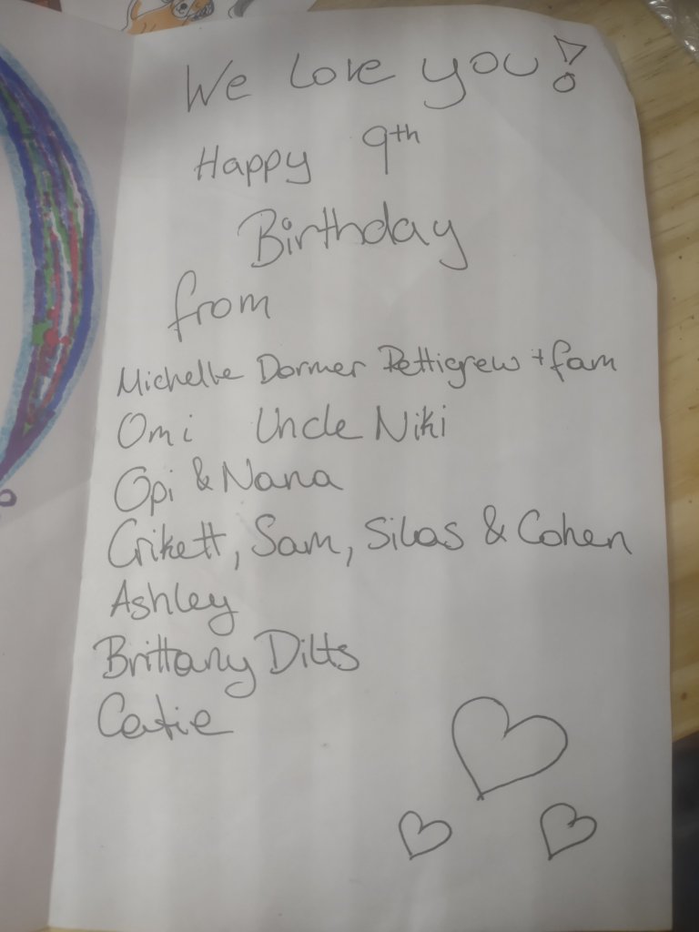 Atreyu had his birthday last Saturday! He’s nine now and it was super success! He’d been wishing for a switch and patiently waiting for one that apparently will never come. The way he spoke about it had become hopelessly despondent. I reached out to my family and made several posts including one on our fb page and y’all pulled together! I was so excited for this kid, I happy danced for days! I wrapped it in a bunch of different boxes until it looked like a huge present (which it is!) With all the donations I was able to afford him the true switch (not a lite or lux edition) adding a protective glass screen, case, and year protection plan! Michelle was the biggest contributor pushing us from a used console to a new one with protection. I’m so blessed to know such cool cind and caring cucumbers.