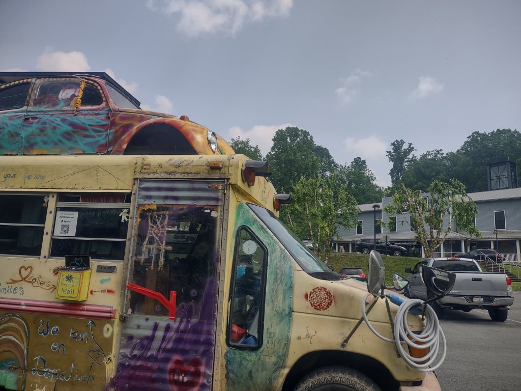 I’m literally sitting in the Walmart parking lot, having done some painting on Matilda and gotten ice. I am trying to make up for the low amount of “income” I’ve made basically sitting still. The kids are beyond stoked to have some internet time which has also been sparse. I’m enjoying the sunshine and the amazing people in this area. I don’t know who’s aware of this anymore but part of my journey and exploration is about seeing the colorful variety in this human race. The brightness that alights with a smile. In a moment I’ll play some ukulele to get my daily practice in. So if you see me with a uke, don’t expect greatness, but expect joy!