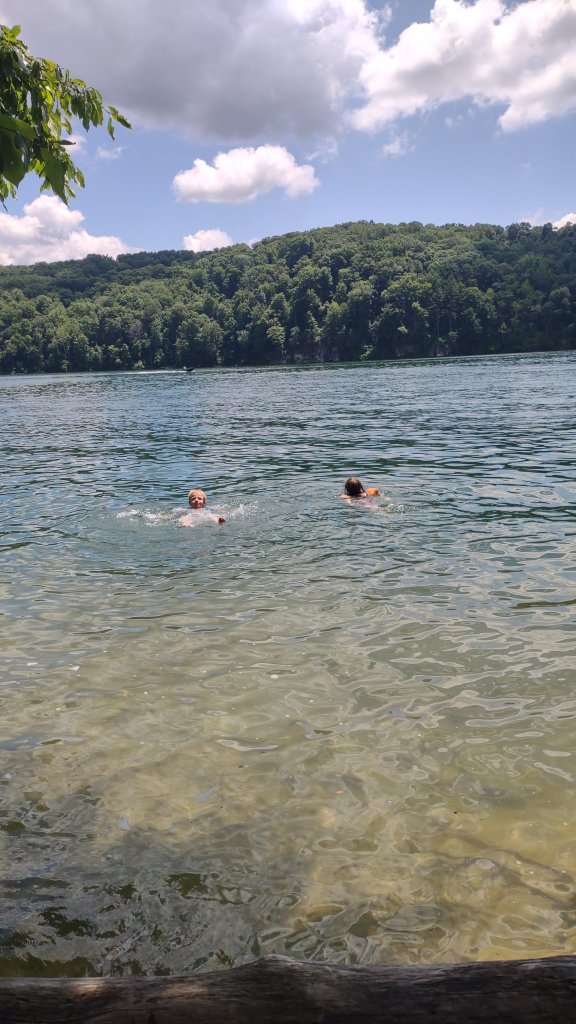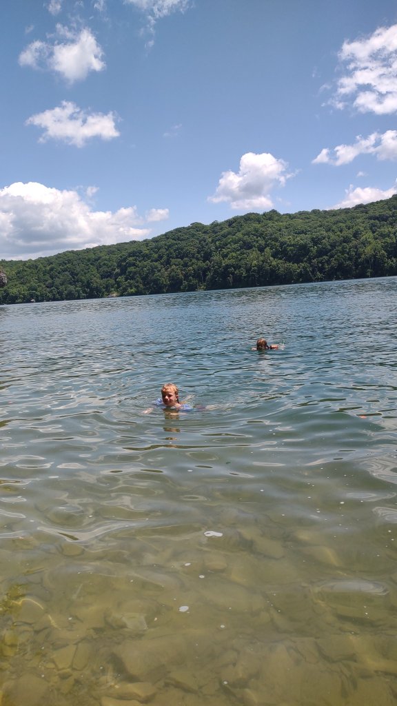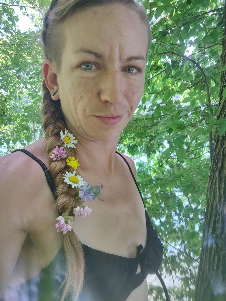 We went swimming in Summerville by Pirate’s Cove. Atreyu jumped off a 6ft cliff after I jumped off the 35ft after a lot of coaxing from Caleb. I put a bunch of flowers in my hair on the hike down to the water.