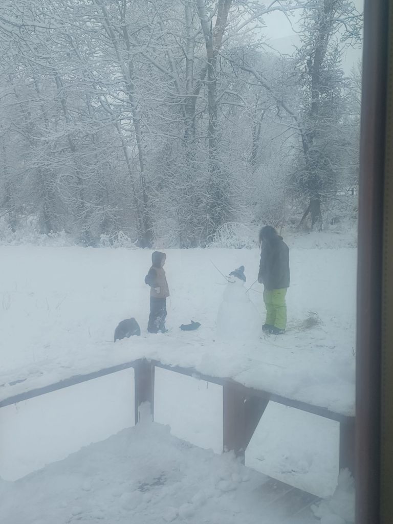 The kids have been staying in the house while I sleep in the bus, except when it hit -40° a few weeks ago. That was rough.